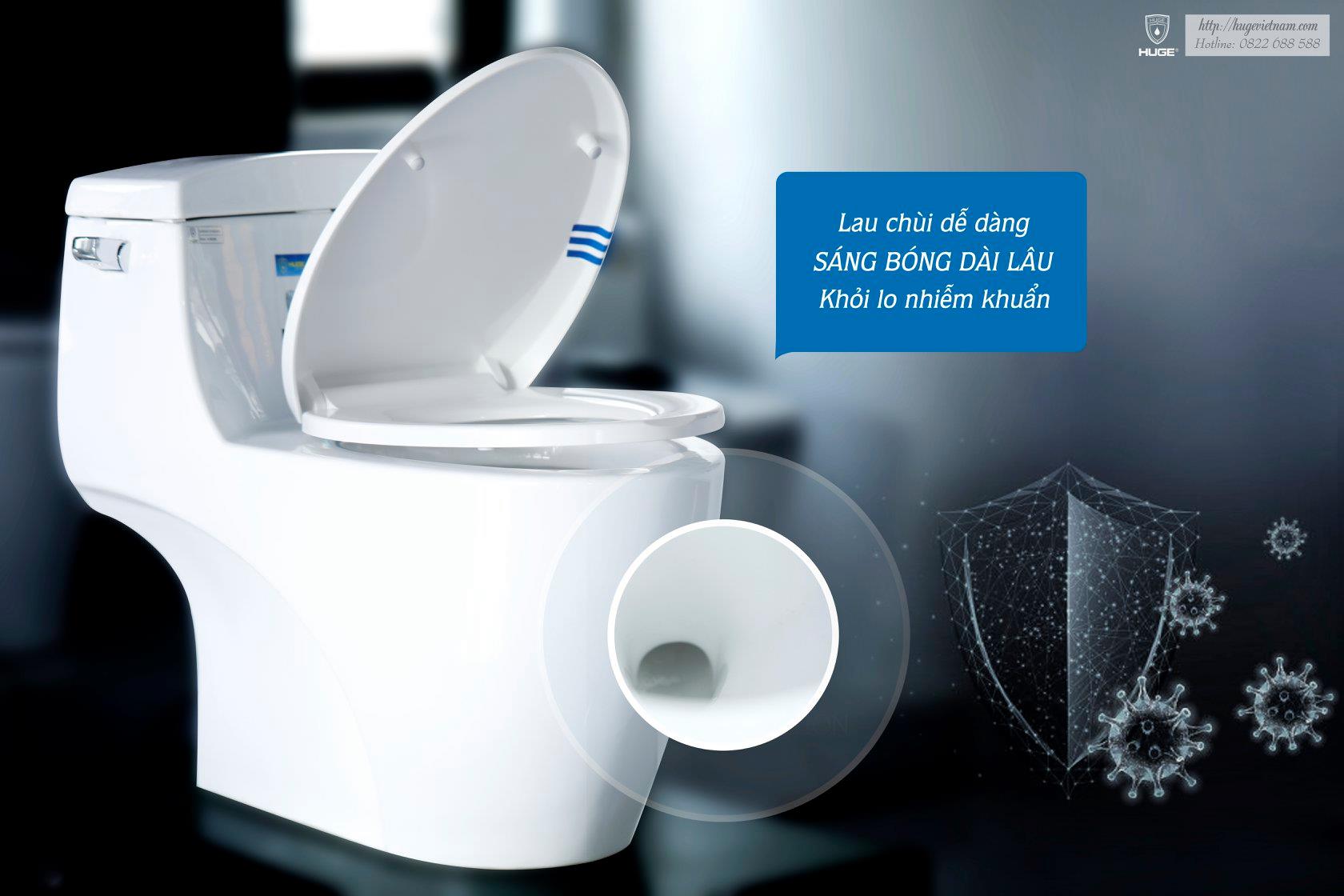 Bạc Nitrate là hoạt chất có tính năng kháng khuẩn, ngăn ngừa vi khuẩn, nấm mốc phát triển do ức chế hoạt động phân chia tế bào. Ứng dụng tính chất này, bề mặt Aqua Ceramic được phối trộn thêm phân tử Bạc (Ag) Nano kích thước 20 nm vào vật liệu Đất sét trắng (Kaolin) trong quá trình sản xuất, do đó các sản phẩm thiết bị vệ sinh Huge có tính năng kháng khuẩn cao, đạt tiêu chuẩn trong kiểm nghiệm bề mặt sản phẩm đạt tiêu chuẩn an toàn sức khỏe cộng đồng.