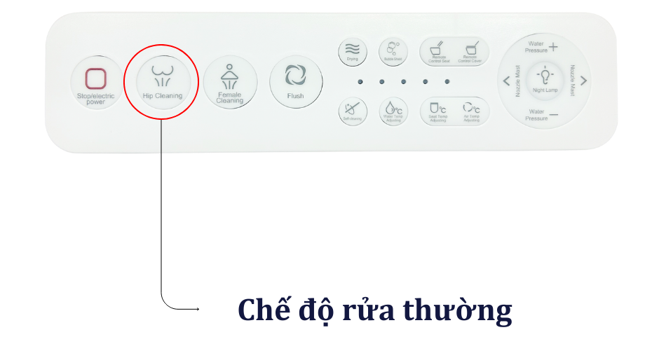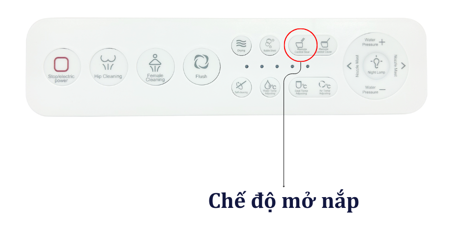 - Kích hoạt chế độ đóng/mở nắp tự động bằng cách nhấn giữ 3 giây vào nút rửa thường trên điều khiển.