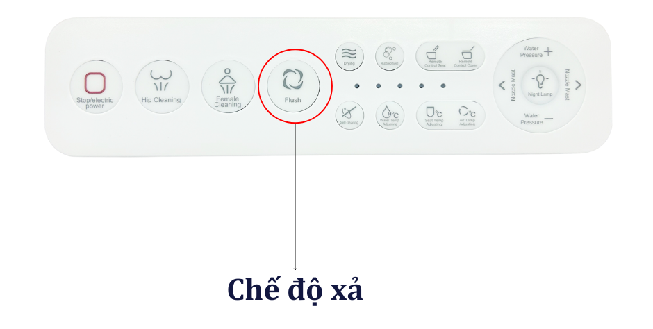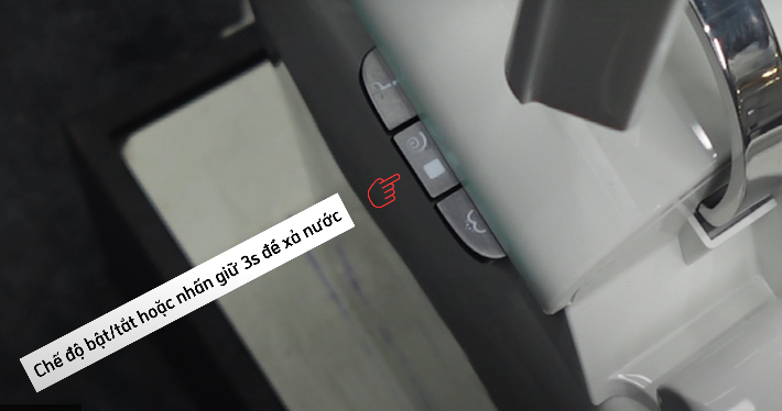 - Nhấn giữ 3 giây vào nút xả nước trên bảng điều khiển bên hông.