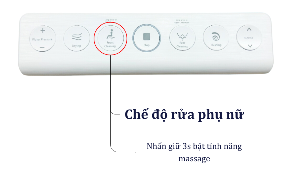 - Rửa phụ nữ: Nhấn nút Rửa phụ nữ để sử dụng dòng nước nhẹ nhàng, an toàn.