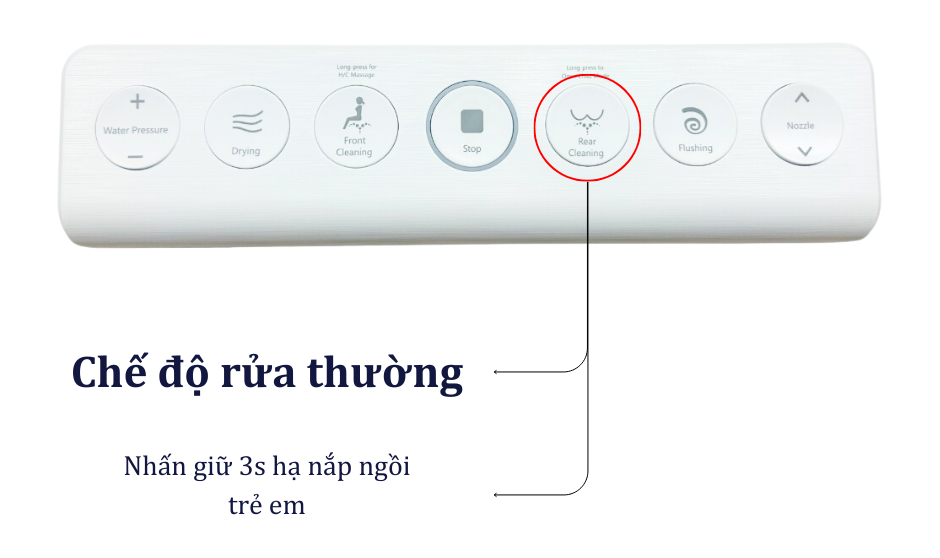 - Rửa thường: Nhấn nút Rửa thường để kích hoạt dòng nước tiêu chuẩn.