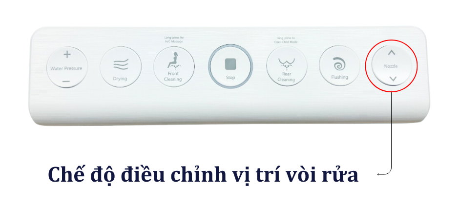 - Điều chỉnh vị trí vòi rửa: Dùng các nút di chuyển trên điều khiển để chỉnh vòi rửa đến vị trí mong muốn.
