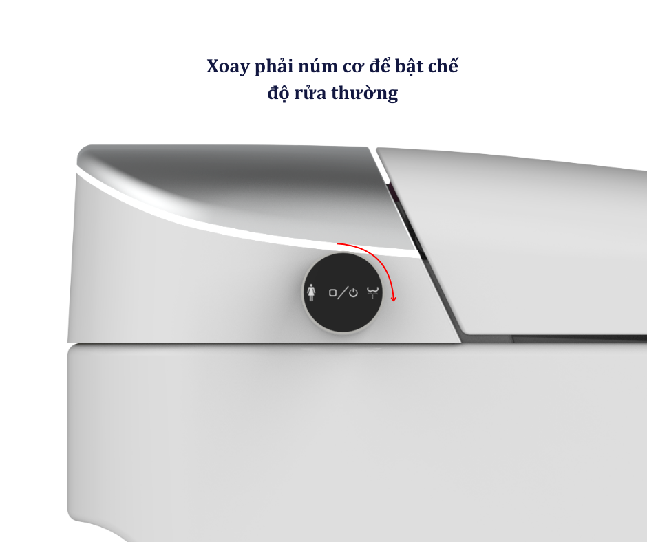 - Kích hoạt bồn cầu khi mất điện: Nhấn giữ núm rửa trong 3 giây để khởi động chế độ rửa lạnh và xả nước.