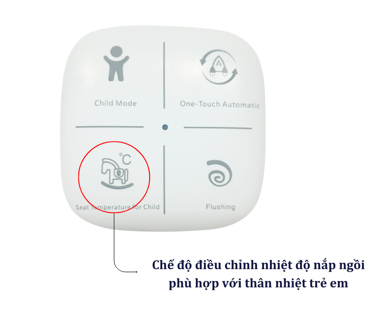 - Điều chỉnh nhiệt độ bệ ngồi phù hợp với thân nhiệt của trẻ.