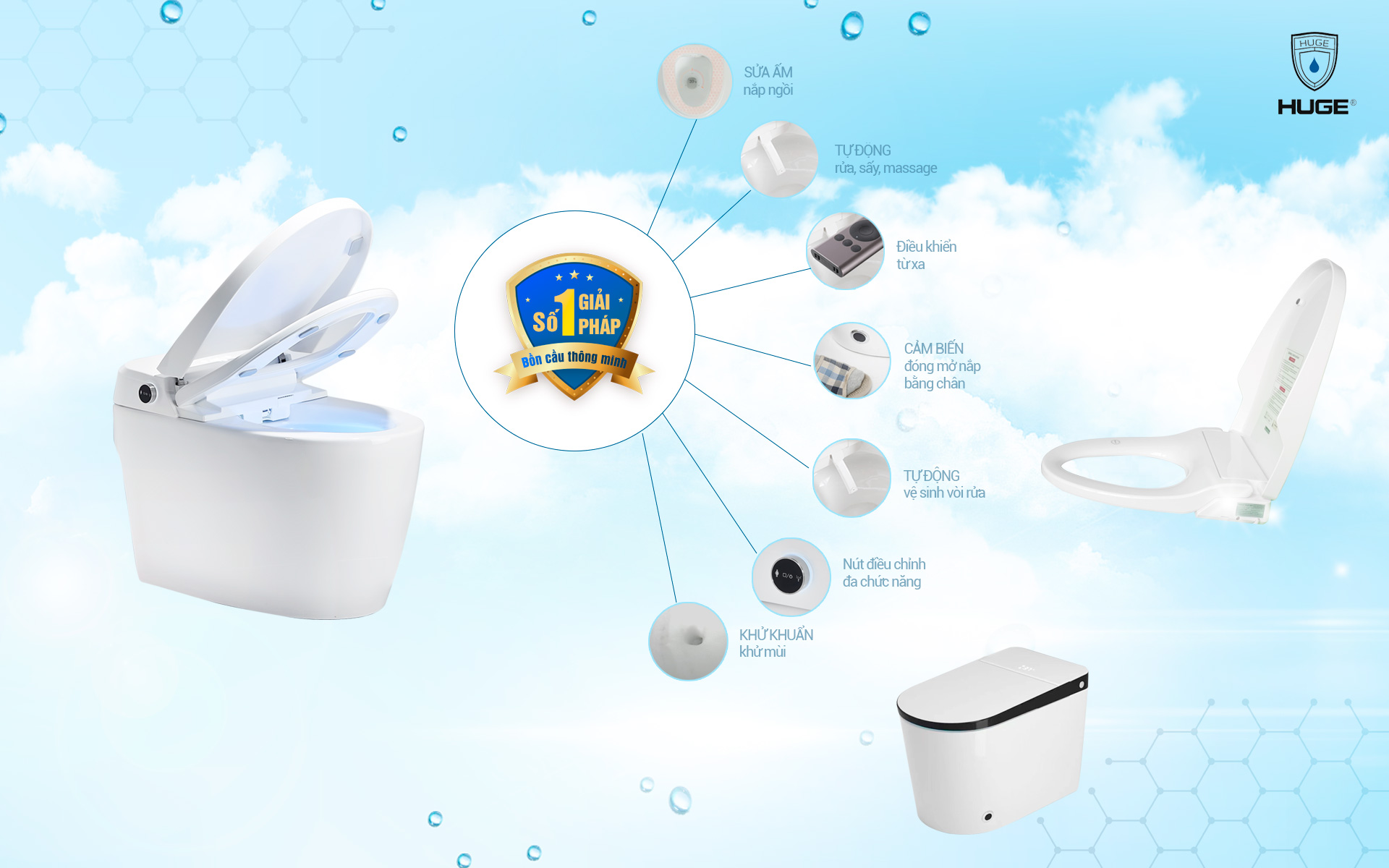 Đầu tiên phải kể đến là chiếc bồn cầu thông minh thế hệ mới Huge.