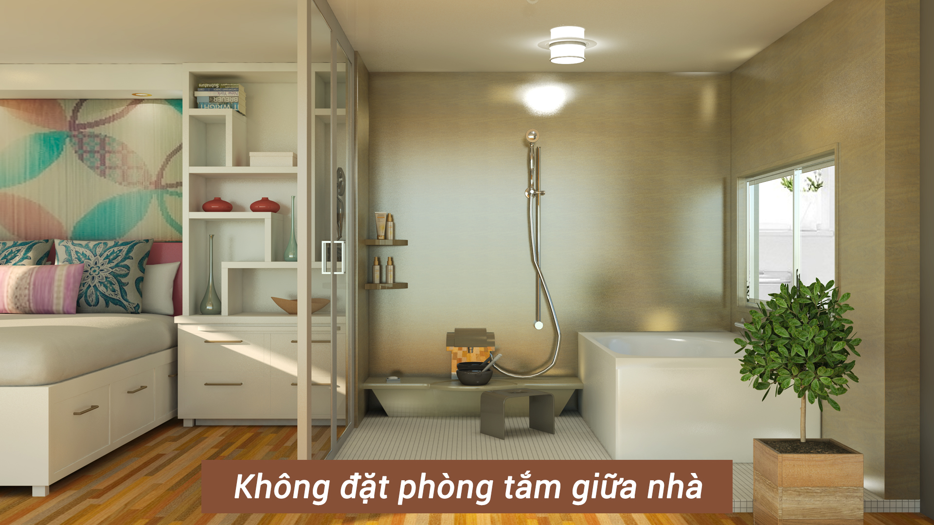 2.Tránh thiết kế phòng tắm ở chính giữa căn nhà