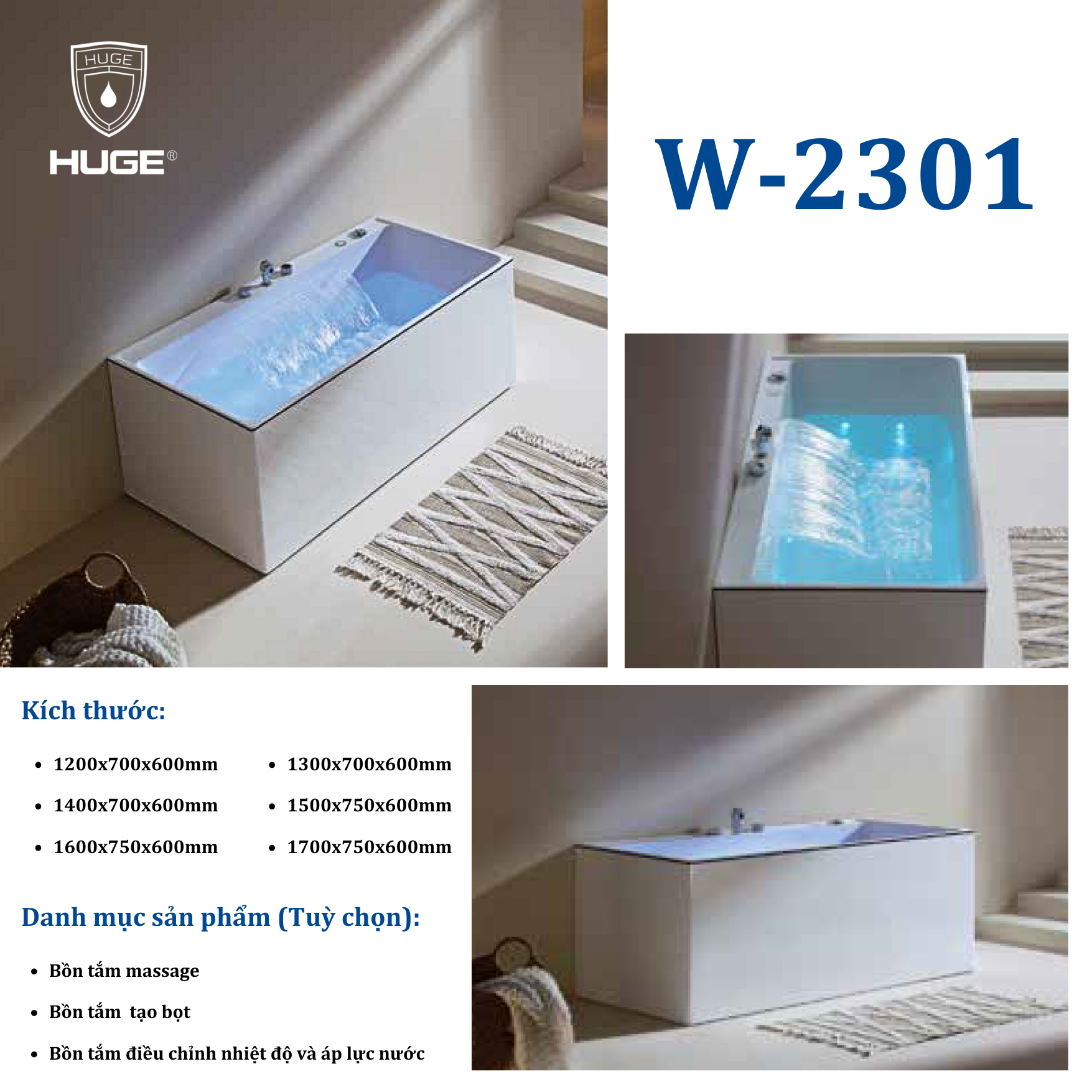 • Tên sản phẩm: Bồn tắm Huge W-2301