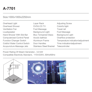 • Tên sản phẩm: Bồn tắm xông hơi A-7701