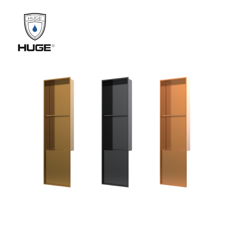 Kệ âm tường đa năng H-11030-DB có ba tùy chọn màu sắc: Vàng hồng, vàng và đen. Mỗi màu sắc đều có thể dễ dàng kết hợp với nhiều phong cách nội thất khác nhau: