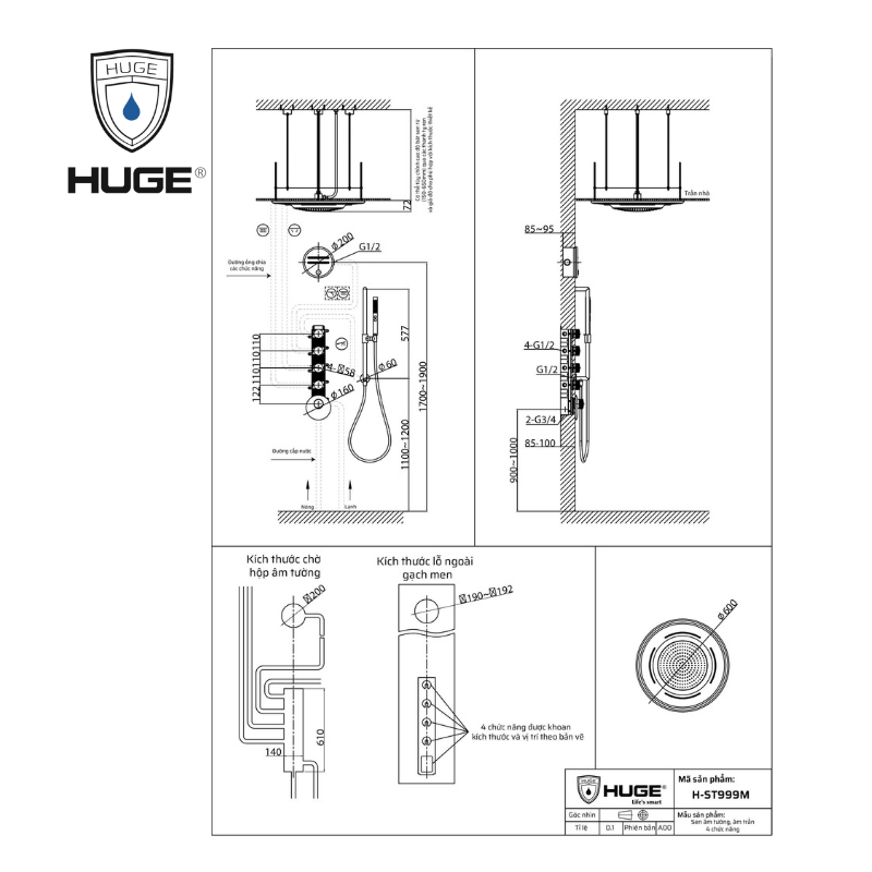 SEN TẮM ÂM TƯỜNG NHIỆT ĐỘ H-ST999M – Lựa chọn tối ưu cho phòng tắm sang trọng